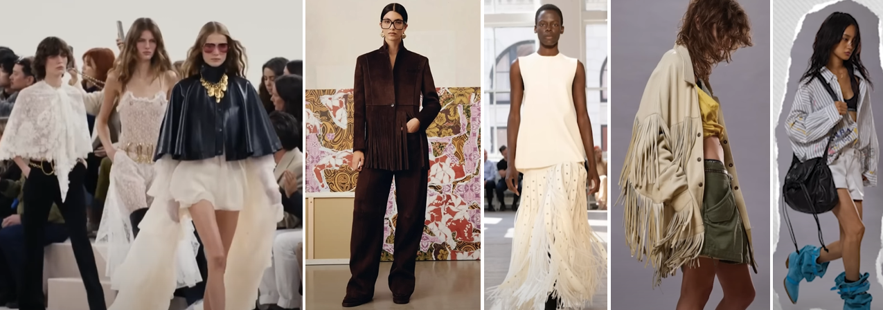 2025년 기대가 될 트렌드로 보입니다. 호불호 큰 부담스러움이 아닌 루즈하고 여유로운 보헤미안 무드에 시크함이 더해진 현대적이고 고급스럽게 재 해석된 스타일로 에스닉 자수 혹은 레이스, 프린지 디테일, 크로셰, 레더 소재와 부츠까지 다양한 아이템에 적용됩니다.